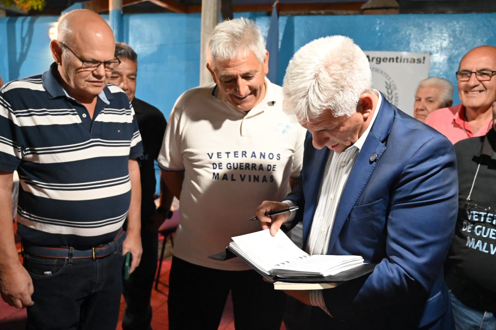 Fue en la sede que tiene la agrupación por la calle Belgrano. “Es el primer Gobernador que nos visita en los 43 años que existe esta causa”, expresó el presidente del centro, Ofaldo Lucero.
