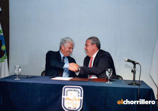El gobernador Claudio Poggi y el rector de la UNSL, Víctor Moriñigo formalizaron la firma de un convenio de “cooperación y asistencia recíproca” de la Provincia y la casa de estudio.