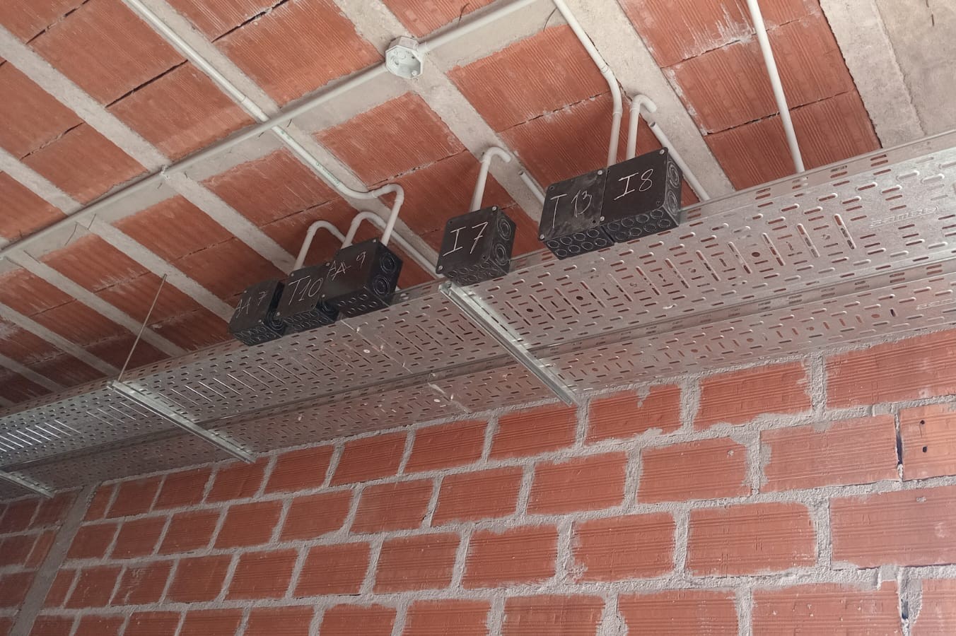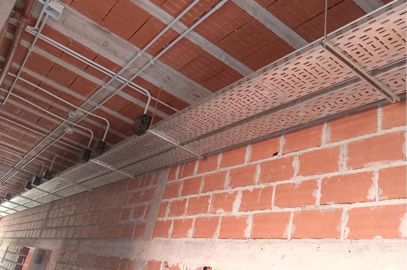 Además, se finalizó el llenado de la losa del techo correspondiente al sector de internación y el armado del techo de chapa con aislante en la sala de máquinas. De manera simultánea, se desarrollan trabajos de instalaciones eléctricas, con la colocación de bandejas portacables, cañerías y cajas de conexión en pasillos y áreas técnicas, anticipando la futura distribución de energía y sistemas del hospital. También se avanza con la colocación de cañerías para la provisión de agua en sanitarios y cuadros de ducha de la residencia médica, así como en los baños de consultorios y de la sala de internación. Estas tareas marcan el inicio de una nueva etapa de la obra, orientada a los servicios y terminaciones.
