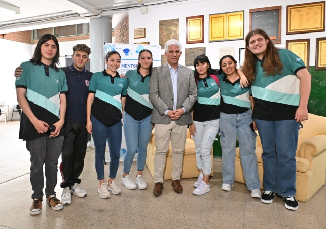 El Gobernador visitó la Escuela Técnica N°9 ‘Domingo Faustino Sarmiento’, donde se realizó el cierre de la mentoría de proyectos estudiantiles, propuestas que los jóvenes elaboraron como parte del programa de vinculación impulsado por la Asociación Empresaria Argentina (AEA). Durante la recorrida, Claudio Poggi fue entrevistado por Gino Campagnoli, uno de los alumnos del establecimiento que tiene orientación en Comunicación Multimedial