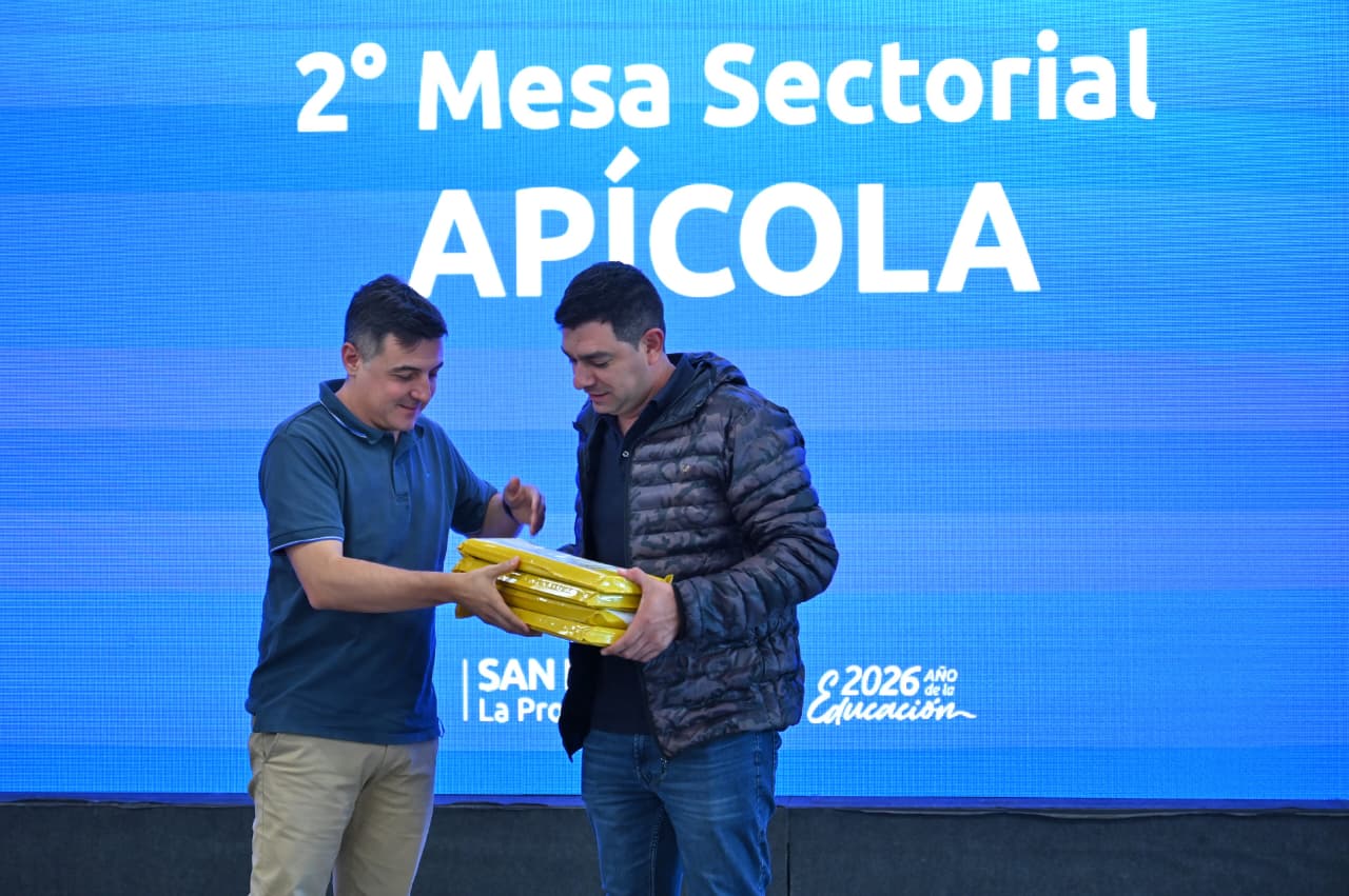Y agregó: “La idea es que, ya de acá, salgamos con acciones en ejecución o con principio de ejecución a partir de las demandas que ustedes hicieron. Ese es el sentido de la mesa sectorial, escucharnos. Y es un ámbito de articulación pública-privada. Fíjense que acá están ministros del gobierno, diferentes ministros del gobierno que tienen que ver con las áreas productivas y de ambiente hay representantes del CFI, del Senasa, del INTA, de todas las áreas del gobierno que tienen vinculación directa o indirecta con la actividad económica. El objetivo es que podamos, más que nunca en estas épocas difíciles, trabajar espalda con espalda, cuerpo a cuerpo, codo a codo para que la actividad privada de San Luis, en este caso la apicultura, progrese. Ese es el sentido de las mesas sectoriales”.